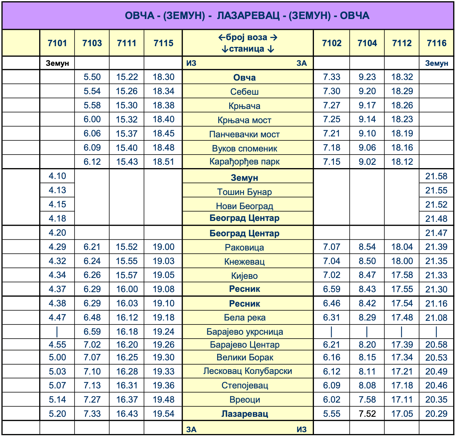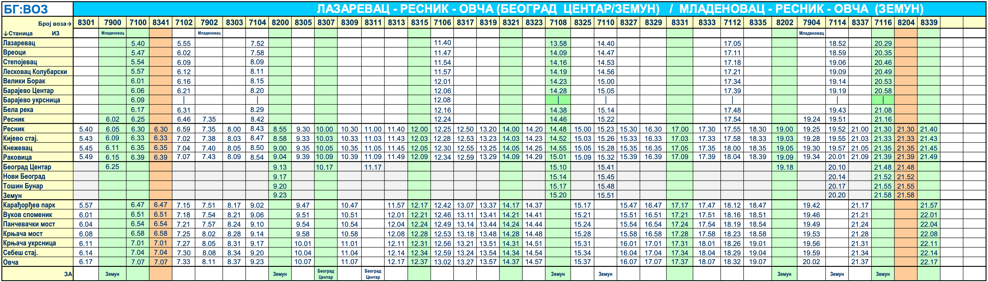 Red vožnje – Linija BG Voz 4 · Lazarevac · Resnik · Ovča